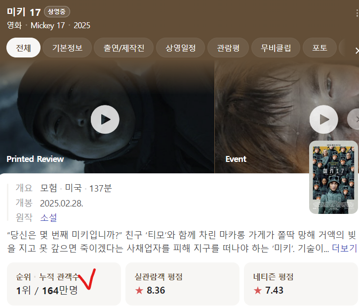 여기까지 최근 개봉된 미키17의 짧은 후기 였고요. 날도 풀렸고, 주말을 맞아 영화관을 찾아보는 건 어떨까요?! 강추!!!
